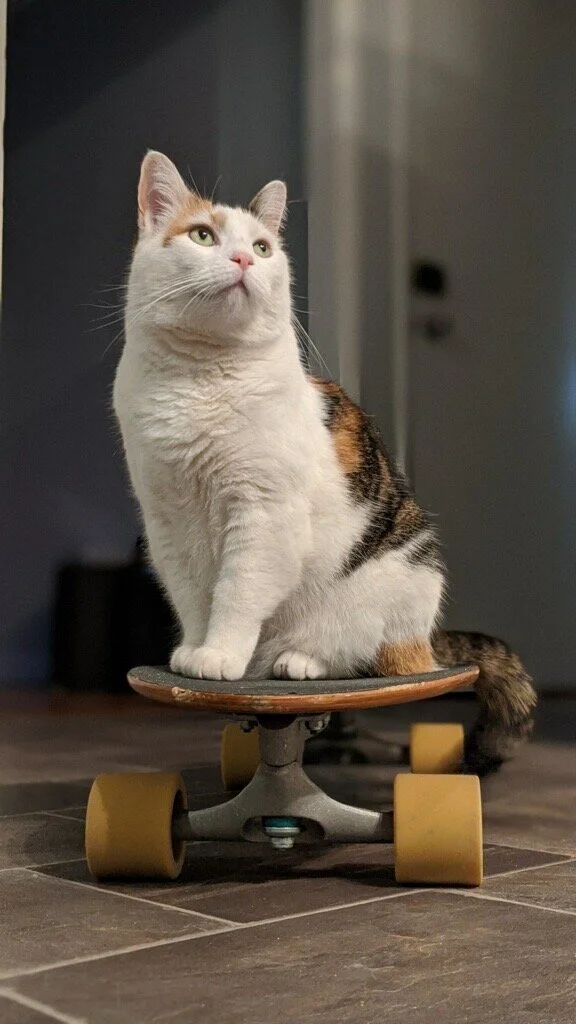 Machine (our cat) is more photogenic than we are. So, here she is :)